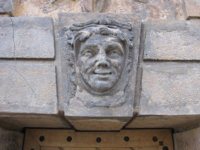 While the back side is more menacing with carved figures and military styling in the stonework.